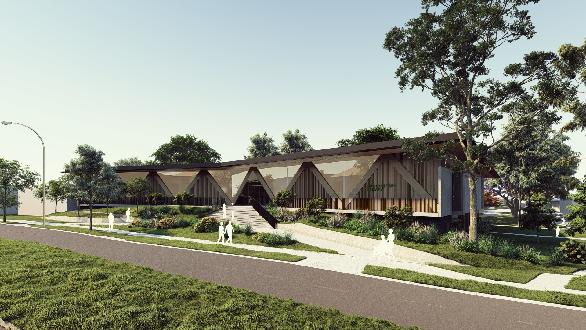 A concept image of the Fallon Park frontage of the new Everton Park Library.