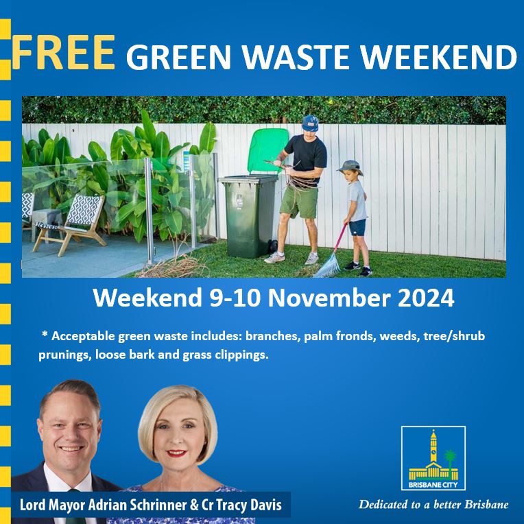 FREE Green Waste drop off this weekend!2024-11-062024-11-06https://www.tracydavis.com.au/wp-content/uploads/brisbanelogo.jpgCr Tracy Davishttps://www.tracydavis.com.au/wp-content/uploads/free-green-waste-weekend.jpg200px200px